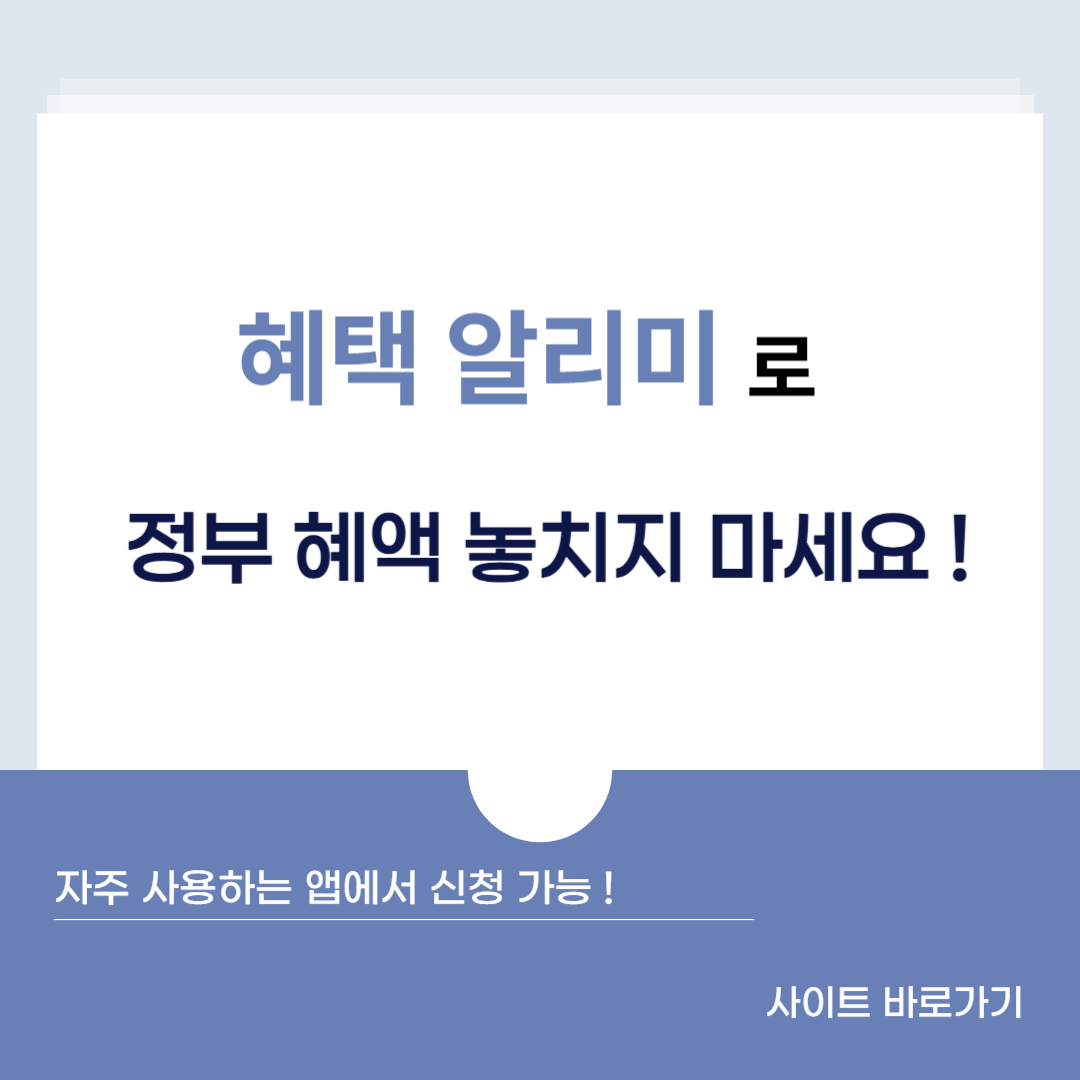 우리는 지금까지 얼마나 많은 복지 혜택을 모르고 지나쳤을까요? 그렇다면 지금이라도 늦지 않았습니다. ‘혜택알리미’ 하나면 내가 받을 수 있는 모든 정부 혜택을 놓치지 않고 확인할 수 있습니다.